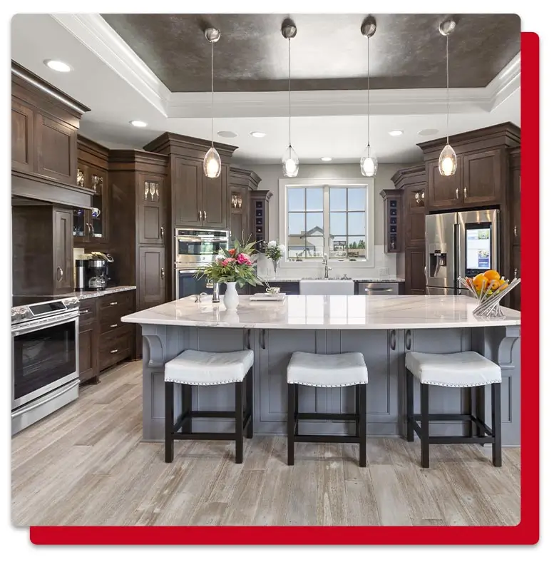 After picking out your desired color and styles, our team of licensed professionals will demo existing kitchen cabinets and countertops, where necessary, install your new cabinets, and finally – clean up the mess. All cabinets are built from either ¾’ UV Birch Plywood, or Rigid Thermafoil (RTF), otherwise known as vinyl. All RTF products come with a full lifetime.